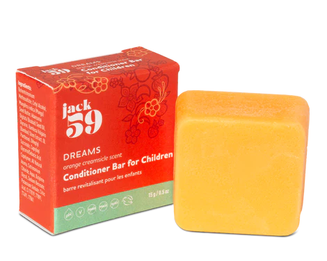 Rejoice in the ease of post-bath hair brushing when you use the Dreams conditioner bar. Made of all-natural, deeply nourishing conditioning ingredients, our bars do not coat the hair like many conditioners do, but work to infuse moisture to the cuticle itself. Kids love the Orange Creamsicle blend of essential oils and natural fruit essences that scent this conditioner, and its solid bar format allows them to apply it themselves without the risk of wasting an entire bottle! Gentle, effective and an all-around hit with the kids - Dreams conditioner bars will make shower time a delight.