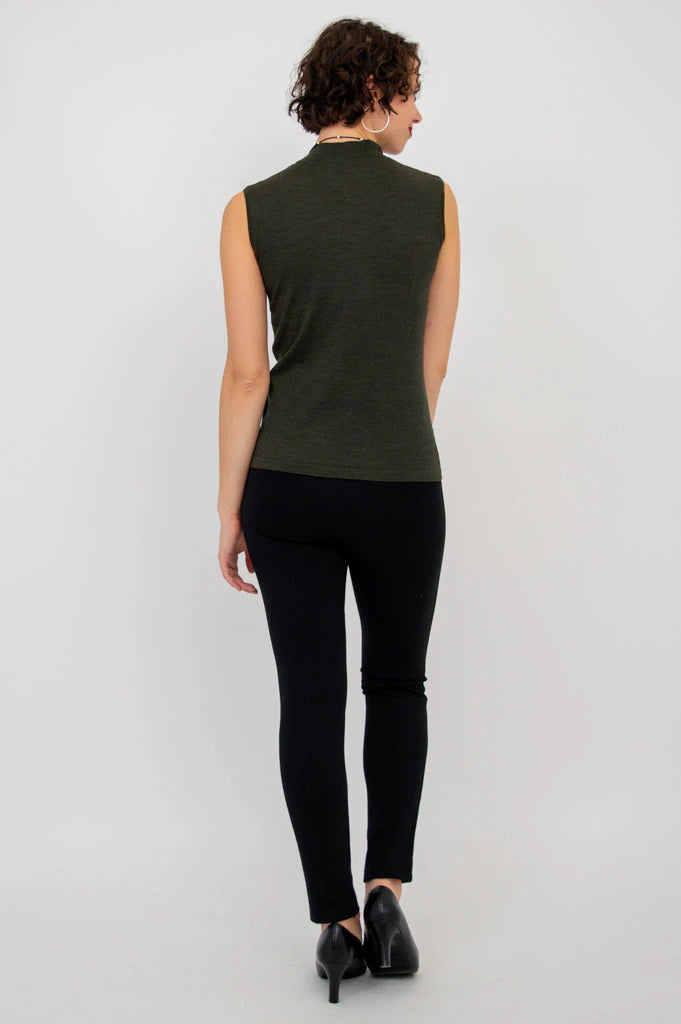 The Rita Sweater is made of our soft, fine Merino Wool. It is a sleeveless style featuring a mock neck and slim fit, allowing it to be worn under sweaters or jackets.
